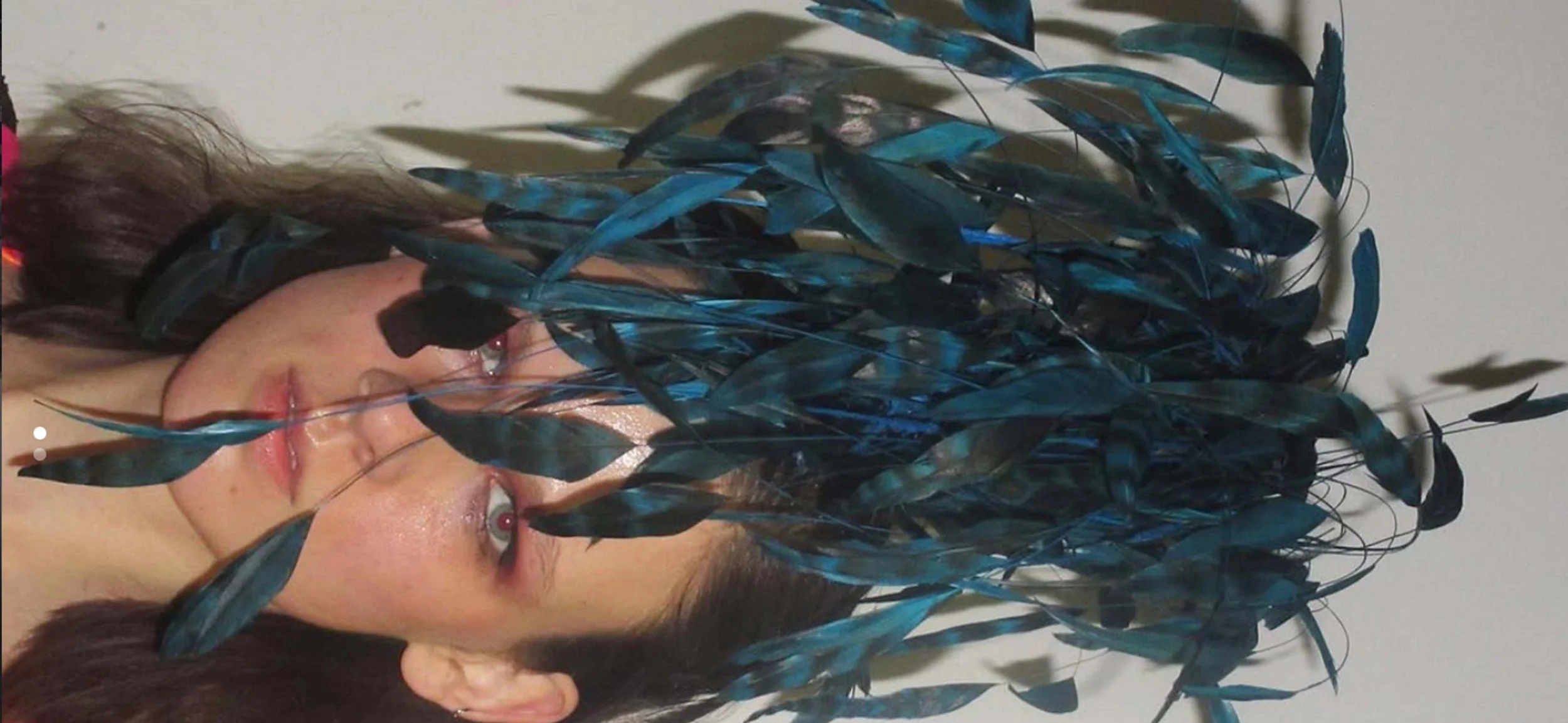 Paula Einfalt; overalls dress, feather mohawk and black feather rose hat for Silhouette mag cover-story