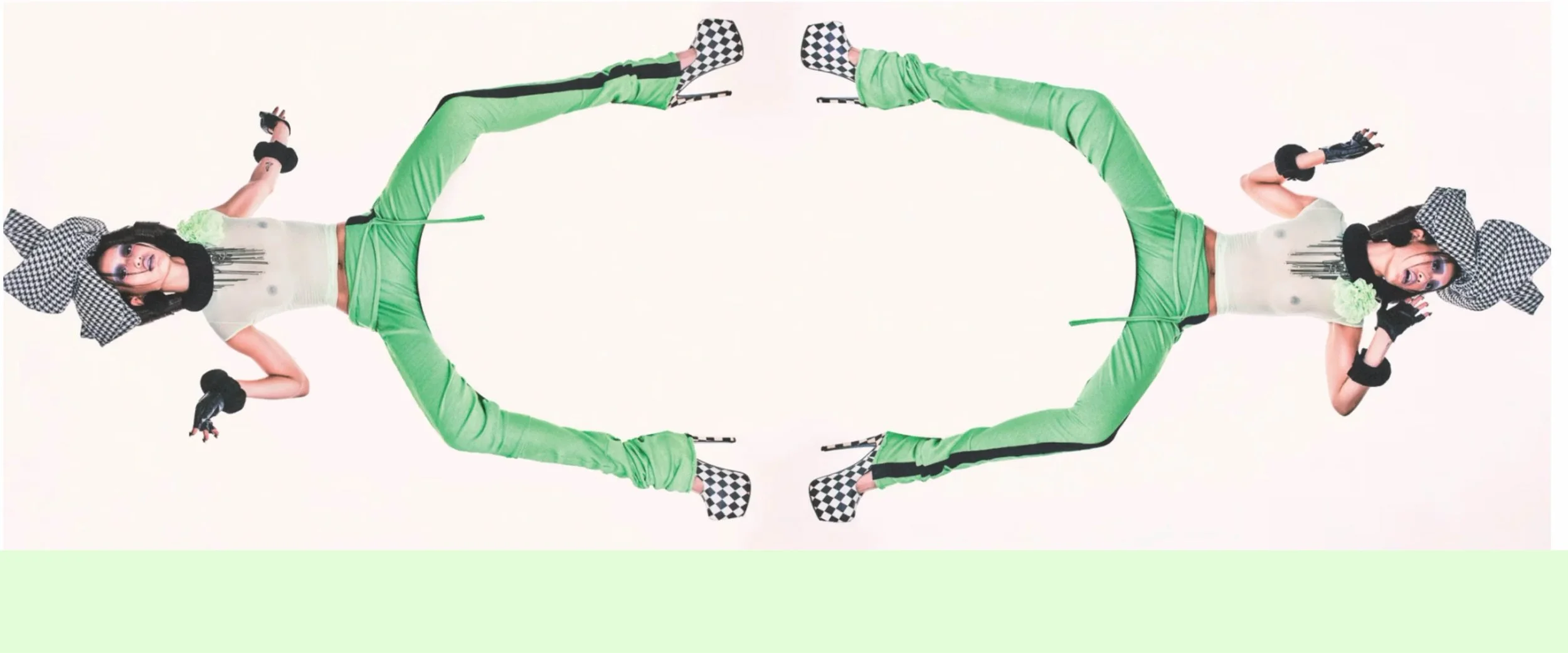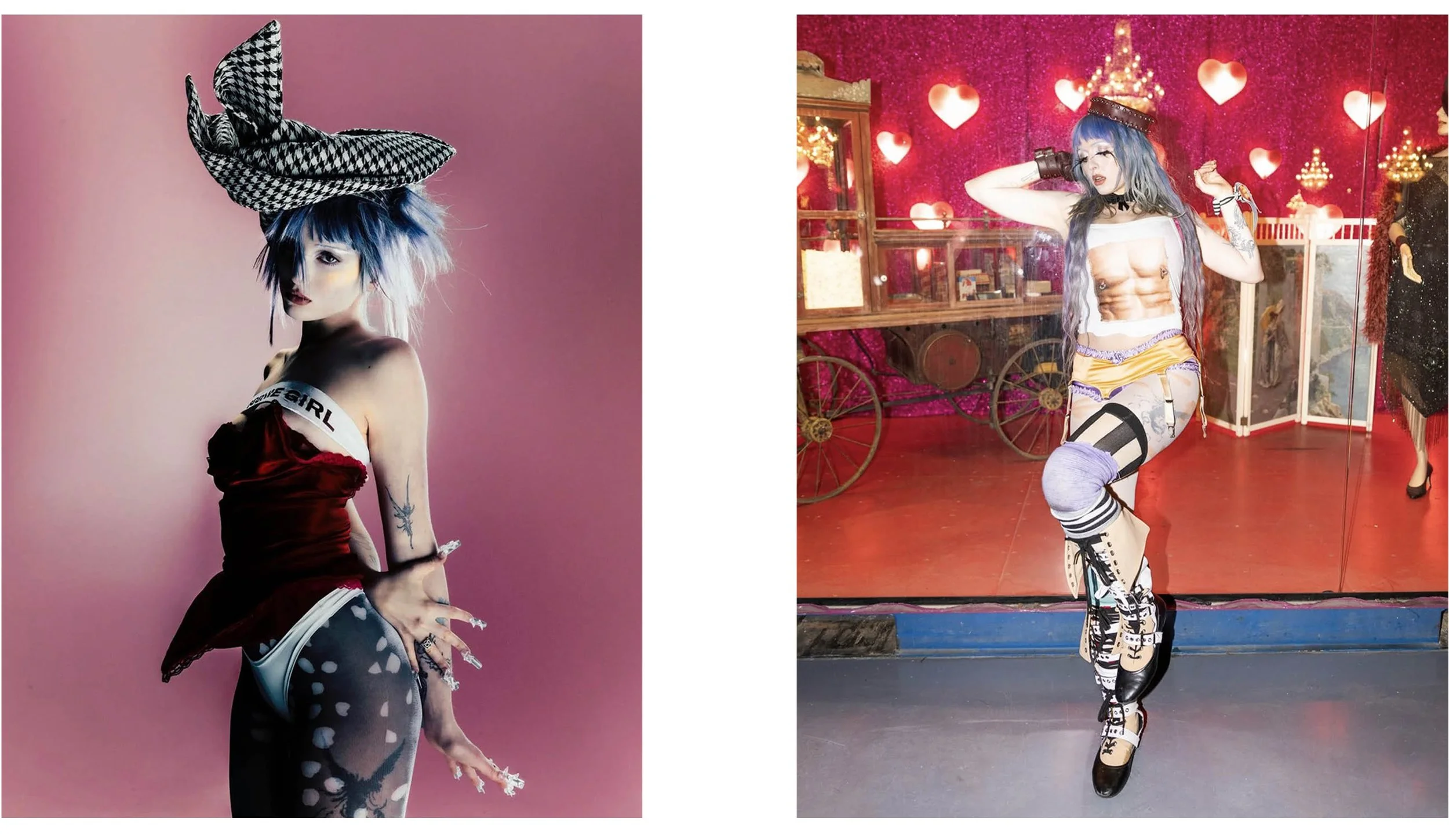 @ashnikko in PAULA EINFALT houndstooth headpiece / @ashnikko in PAULA EINFALT CUSTOM BOOTS AND SOCKS